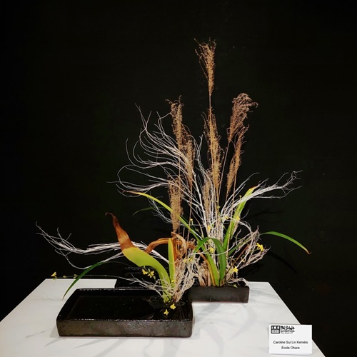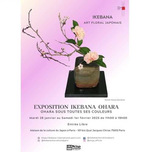 Depuis mardi 28 janvier, 3ème semaine d’exposition ikebana International Paris à la Maison de la Culture du Japon. L’École Ohara est mise à l’honneur !
