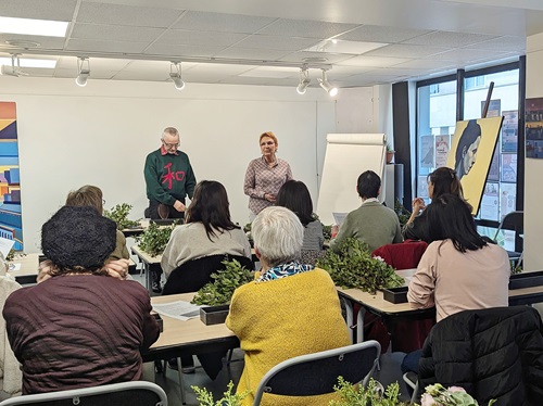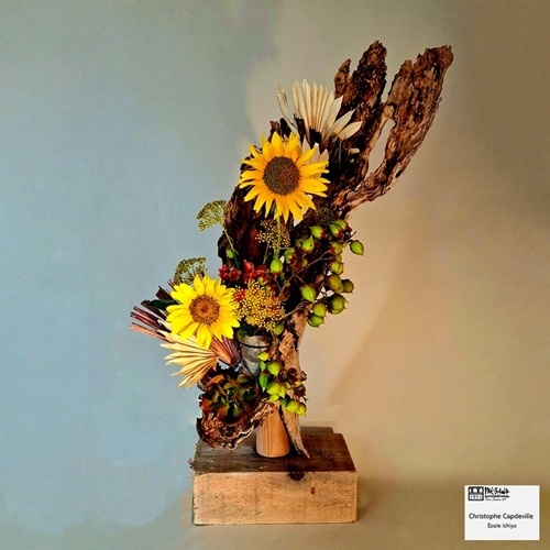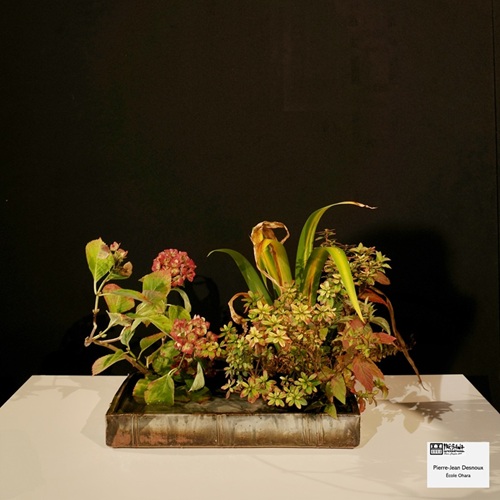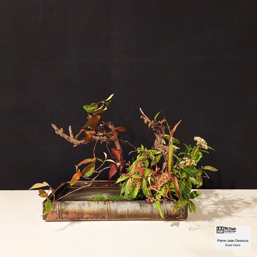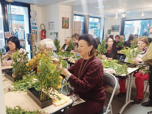 Samedi 16 novembre, à l’initiative d’Ikebana International Paris, plus d’une vingtaine de personnes se sont retrouvées à la maison de la vie associative et citoyenne de Paris 7 pour un atelier d’ikebana école Ohara. Le Maître Pierre-Jean Desnoux animait l’atelier sur le thème Shikisai-Moribana Shikisai-hon-i, c’est-à-dire un arrangement réaliste de couleur multi-variétés.