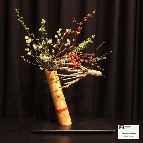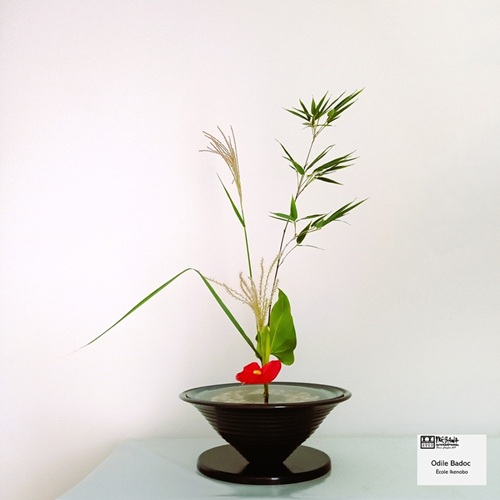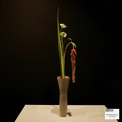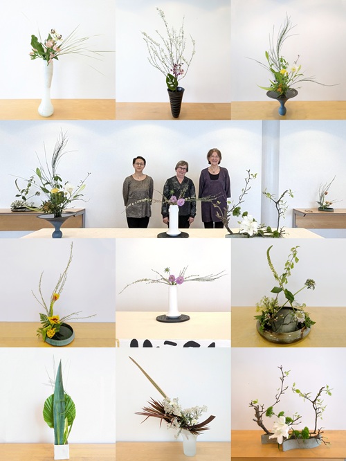 Démonstration d’ikebana à la Maison de la culture du Japon à Paris samedi 12 avril. Les 3 professeurs des écoles Ikenobo, Ohara et Sogetsu enseignant à la MCJP ont chacune réalisé 3 compositions en direct devant l’assistance qui a fait salle comble.