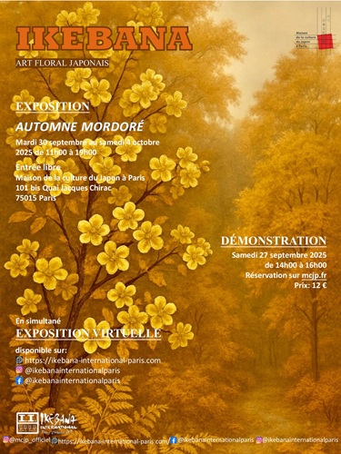 L’exposition ikebana « Automne mordoré » bat son plein cette semaine à la Maison de la Culture du Japon à Paris, accompagnée d’une exposition virtuelle.